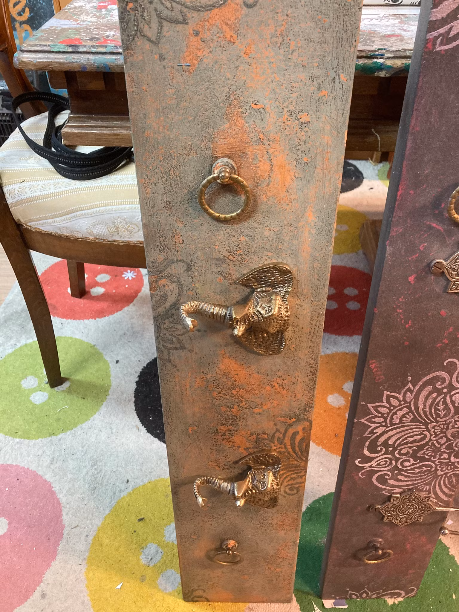 Jag har gjort saltwash för att få fram finishen och monterat elefantkrokar från Indiska samt behållit lådhandtagen.