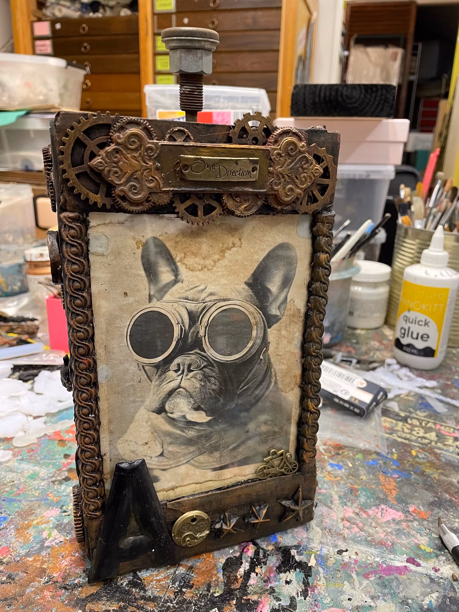 Upptäck magin i min exklusiva steampunk-värld med denna unika tavla, där kreativitet och återbruk möts i en fascinerande symbios. "Fralla som Pilot" är inte bara en tavla, det är en berättelse om tidlöshet och innovation.